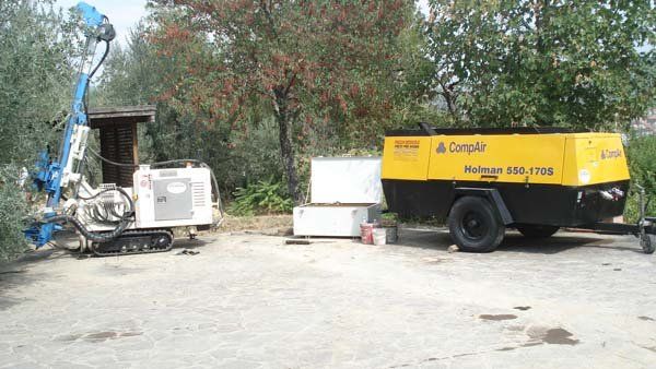 - Perforazione del foro, tramite l’utilizzo di martelli fondo-foro, eliche, triconi, etc.;